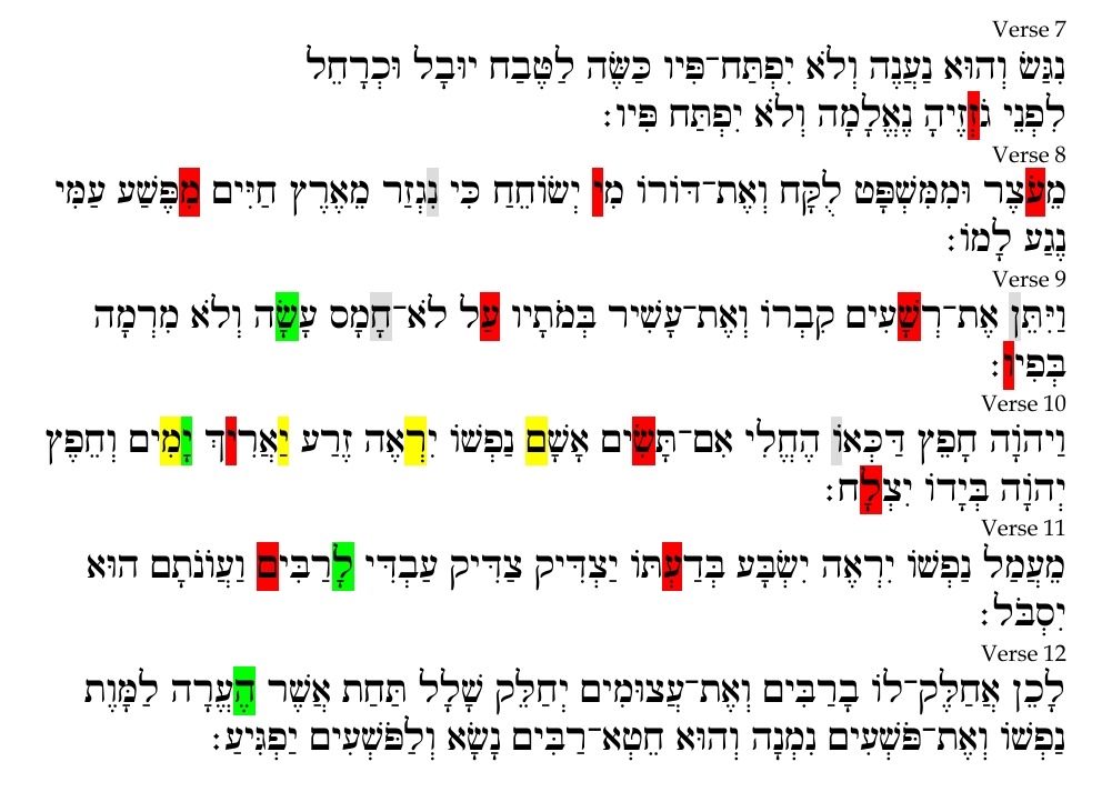 The Hebrew text of Isaiah 53 reads (the text is from WLC, Westminster Leningrad Codex),
